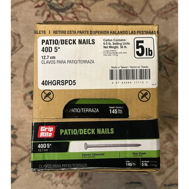 Grip-Rite 30 Lb Grip Rite Patio Deck Nails 40D 5" Exterior Galvanized Ring shank 40hgrspd5