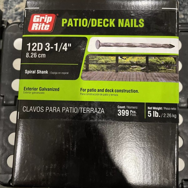 Grip rite 12D 3-1/4" Galvanized Exterior Spiral Shank Deck Patio Nails 5lb 399p.