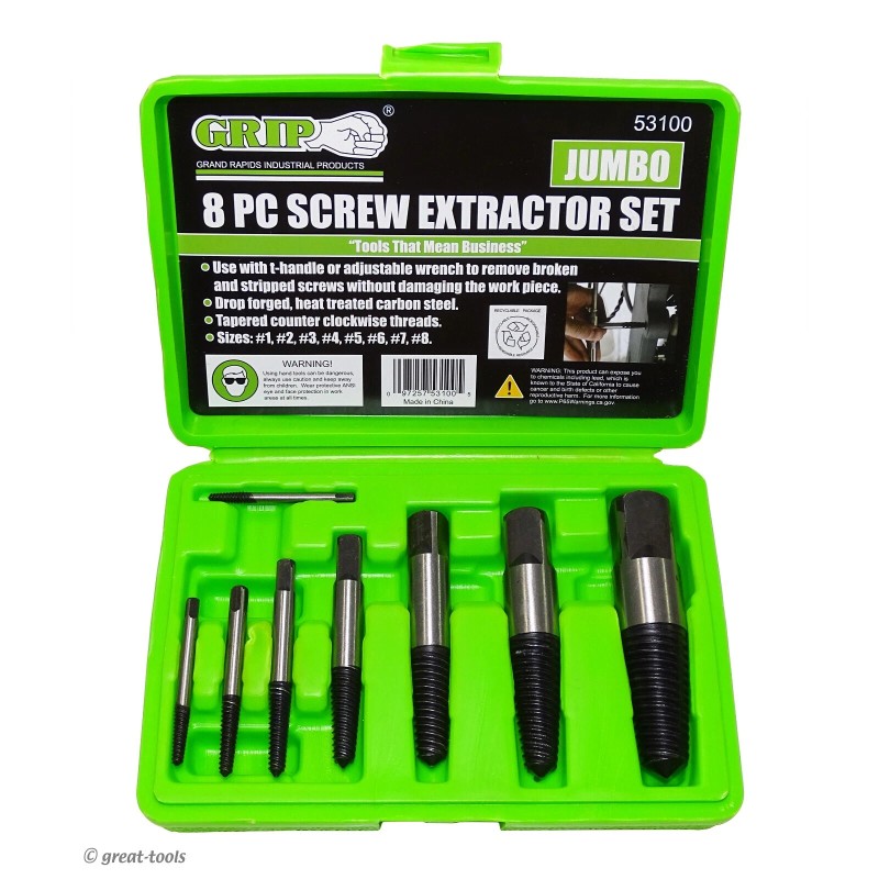 GRIP SCREW EXTRACTOR SET – large sizes, easy outs, hand tools, jumbo ez out r...