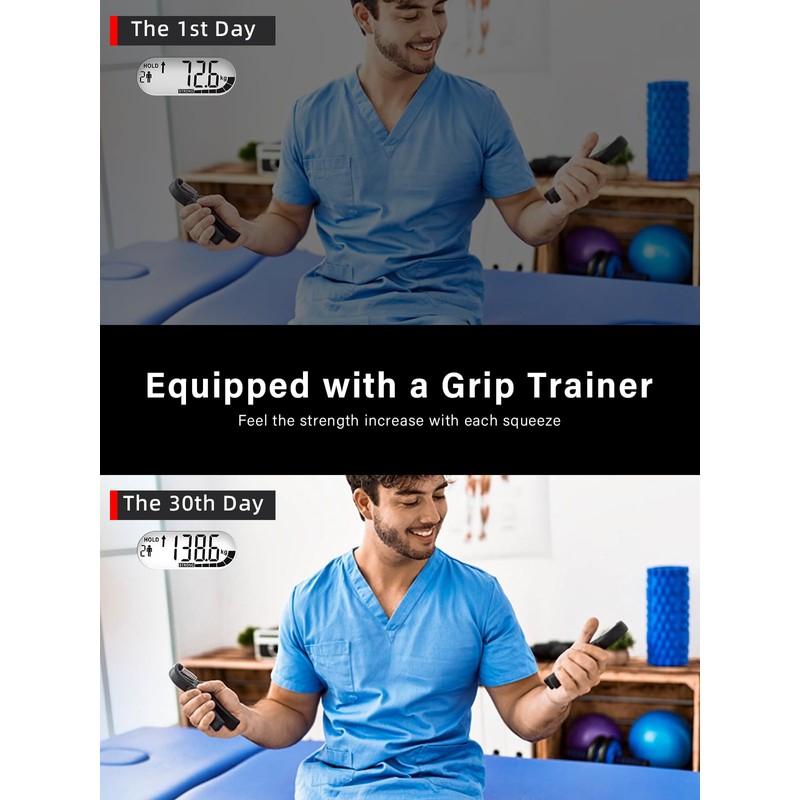 - [Potenciador de agarre de doble función] Este juego integra un probador de fuerza de agarre de alta precisión con un entrenador de agarre de resistencia ajustable, satisfaciendo de manera integral tus necesidades para medir y mejorar la fuerza de agarre