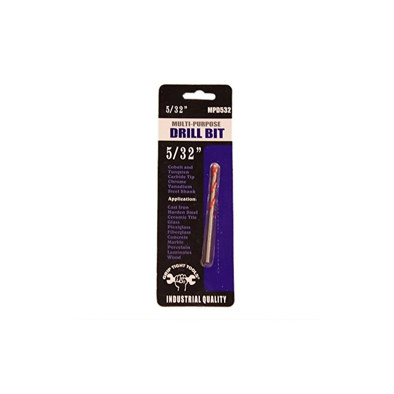 Grip Tight Tools Multi-Purpose drill bits, smooth shank- 5/32"x 3 1/4" the drill bit cuts through all materials, Cobalt and tungsten carbide tip. Chrome vanadium steel shank.