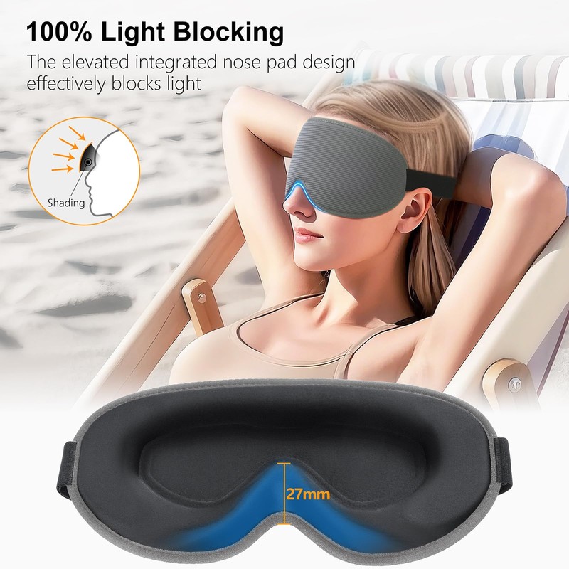 • 3D Stereo Design: Adopting advanced integrated 3D stereo eye socket design, it fits the eye curve perfectly, reduces the pressure of traditional eye masks on the eyeballs, and allows the eyes to breathe freely during sleep. Whether lying on your side or back, it can provide the ultimate comfort experience and help you relax deeply. The unique design not only protects your eyes, but also relieves eye fatigue, allowing you to wake up refreshed.