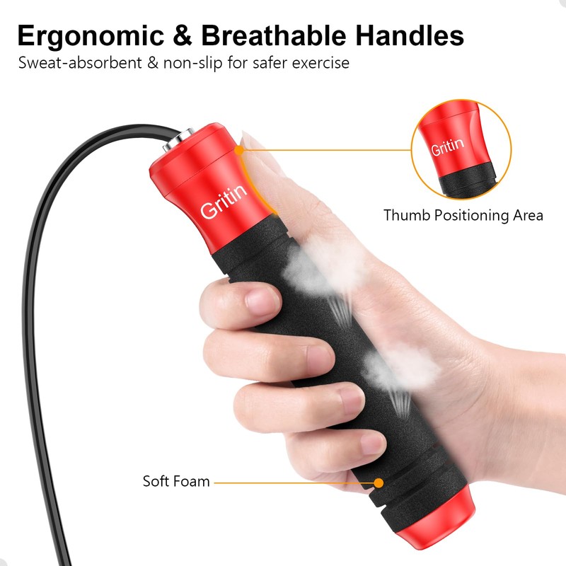 - Non-slip & Ergonomic Handle: The handle of the skipping rope is ergonomically designed and comfortable to hold. And thanks to the high-quality memory foam, the handle is soft in the hand, is sweat-absorbent, non-slip and skin-friendly. It is ideal for your fitness and training.