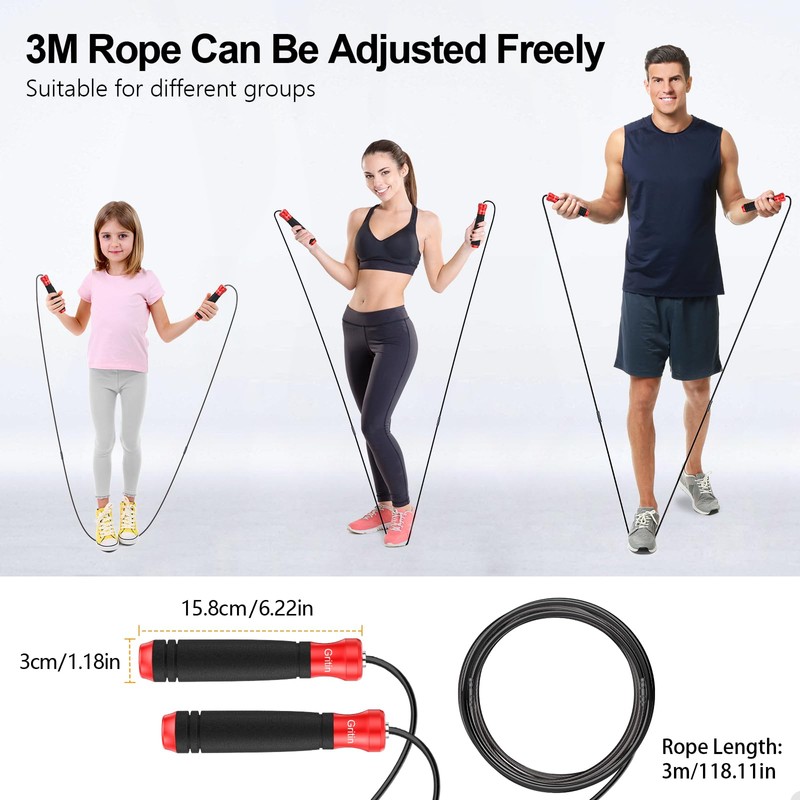 Gritin Skipping Rope, Speed Rope Adjustable with Non-Slip & Ergonomic Handles, 3 Metre Length Adjustable Rope with Scale Marking, for Fitness & Endurance & Skipping Rope, Includes Length Adjuster