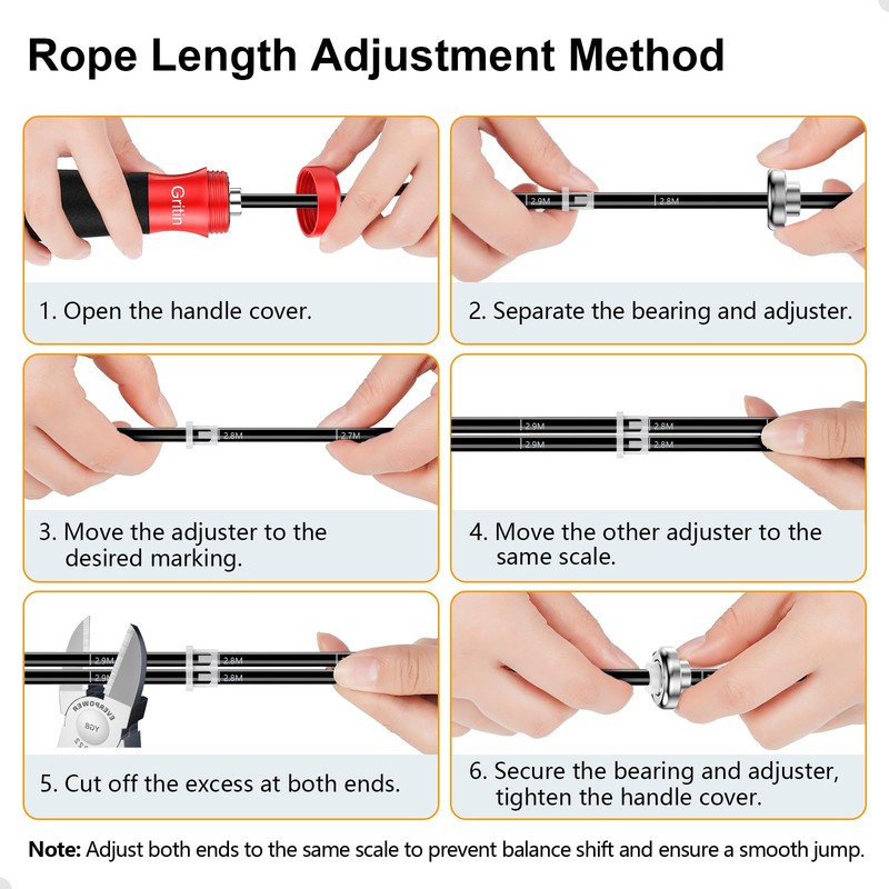 - 3 Meter Skipping Rope & Adjustable Length The total length of the rope is 3 meters, with scale markings at 2.3-2.9 meters, and both ends are made of pure PU ropes, allowing users to easily adjust the length as needed. This makes this jump rope suitable for people of different sizes and body shapes, whether men, women or teenagers and girls.