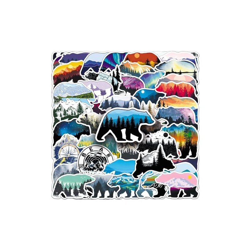 Grizzly Bear Stickers 50 Pcs Vinyl Cartoon Funny Animal Sticker for Water Bottle Laptop Skateboard Motorcycle Car Bumper Luggage Computer,Waterproof Cute Bear Stickers for Adults Teens