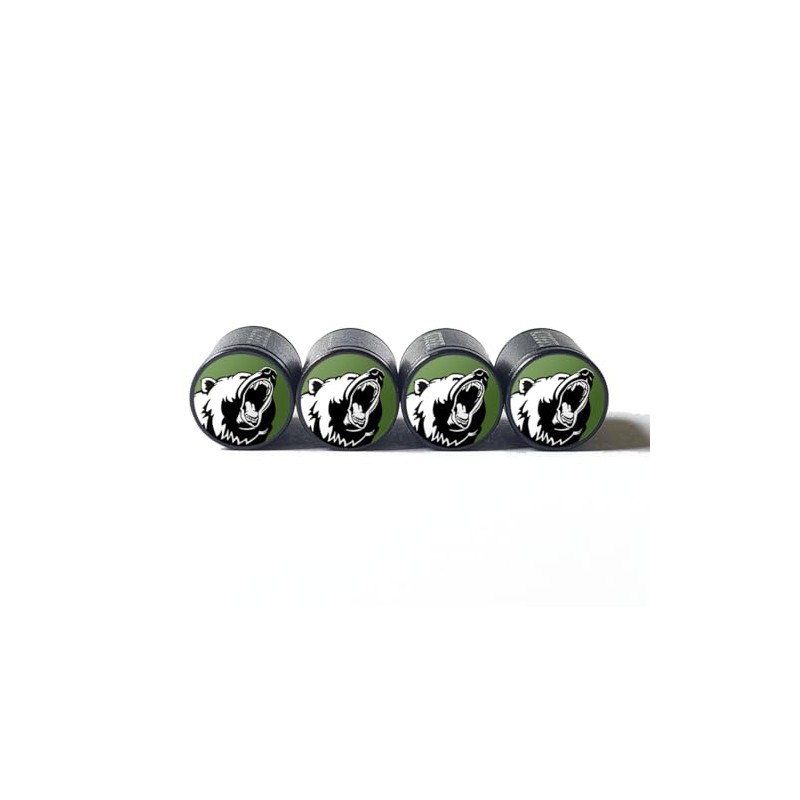Grizzly Bear Tire Valve Stem Caps (Olive Green Background) - Set of Four - Fits on All Vehicles