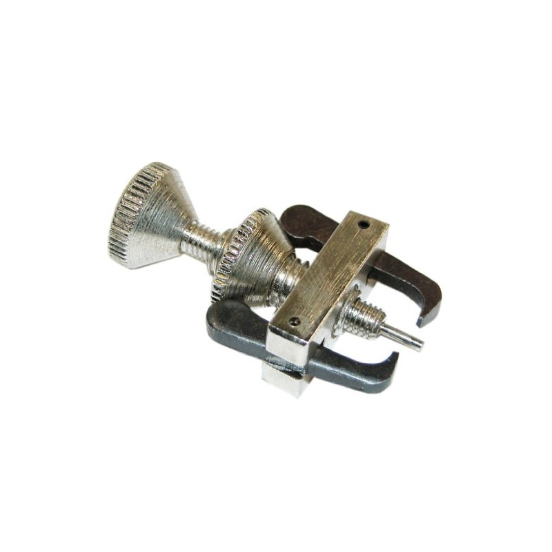 For all types of clocks and instruments. Jaws are adjustable to fit over various sized hands and pusher is always centered. Screw pressure pulls hand or gear away from post or pinion. Does not touch dial. Jaws open to 7⁄16" (11.1 mm), post size 1⁄16" (1.6mm). Post size 1/16" (1.6 mm)