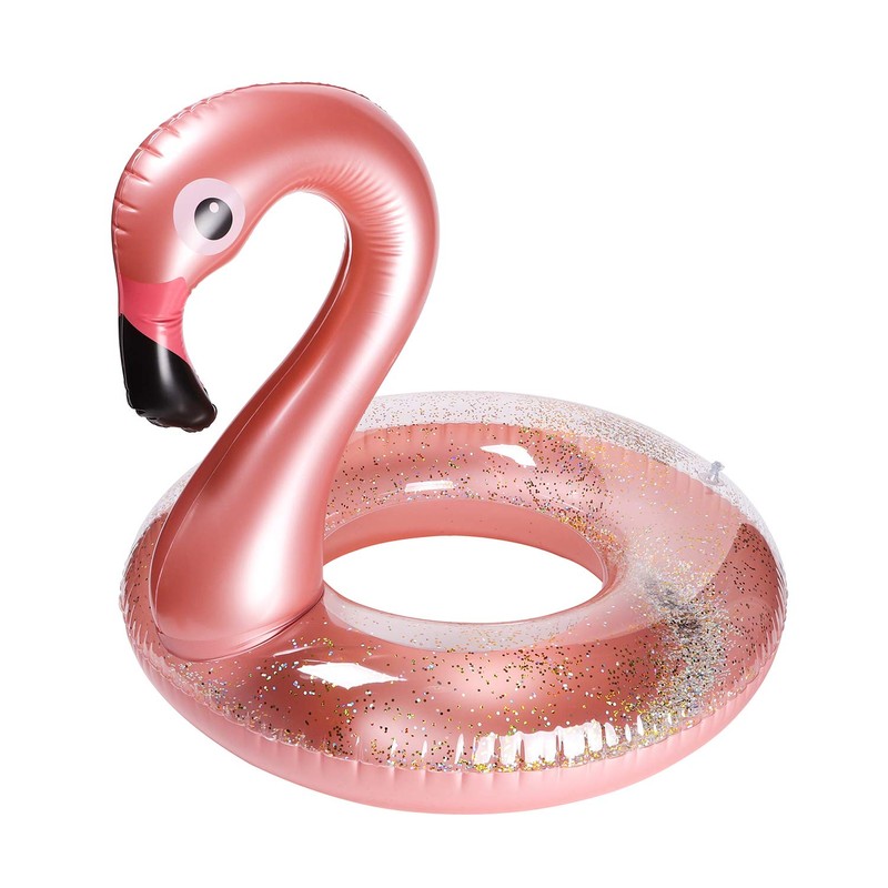 - Beautiful and Summer Design: Impressive giant pink flamingo float set with a beautifully detailed design, cool confetti filled jumbo inflatable pool ring, great for kids and thin adult.