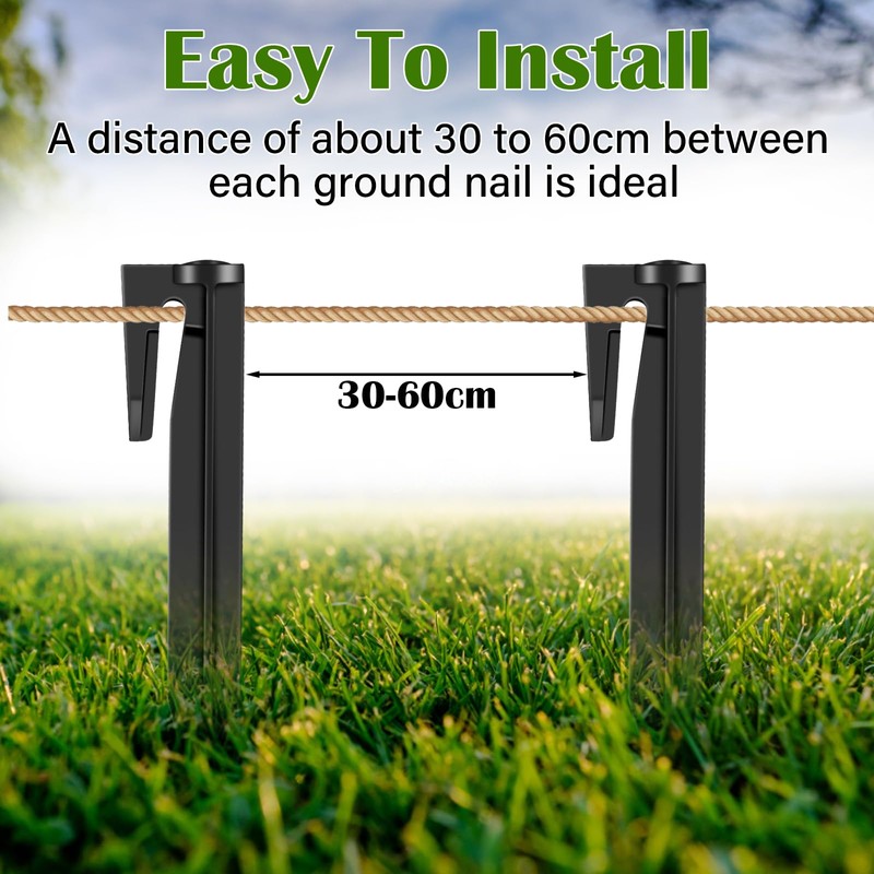 - Quick installation: first hook the boundary wire into the hook-shaped head of the ground nail. The deep groove shape of the head prevents the wire from slipping out. Then use a rubber hammer to hammer the ground nail into the ground. Due to the stable and large striking surface, the nail can be quickly and safely fixed in the ground.
