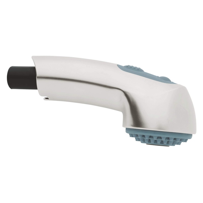 Boasting an unmistakably distinctive profile, Ladylux Plus follows in the extraordinary tradition of the original Ladylux, the first pull-out kitchen faucet in the U.S. Ladylux Plus is not, however, distinguished solely by its design. Ladylux Plus’ smartly designed lever allows fingertip control of water temperature and flow thanks to GROHE SilkMove technology. It also offers significant performance features such as GROHE's patented SpeedClean anti-lime system which maintains like-new spray function with a simple wipe. Ladylux Plus is available in a number of finishes including the striking GROHE StarLight chrome. Or, select the professional’s choice, GROHE RealSteel. Grohe Ladylux Plus Sprayhead in RealSteel Stainless Steel # 46 298 SD0. For Ladylux Dual Spray Pull-Out Kitchen Faucet # 33 737 and High Profile Pull-Out Kitchen Faucet # 33 759.