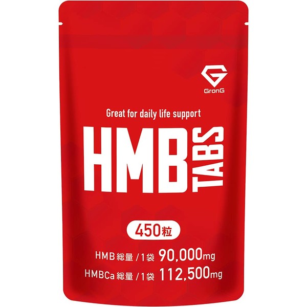 - 「GronG(グロング) HMB タブレット」は、「HMBCa」を112,500mg配合しています(1袋450粒当たり)。