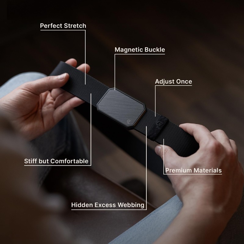 - MATERIALS - Its signature magnetic clasp also makes this the easiest belt to snap on during your morning hustle and wear all day long without hassle. Our tactical belt began with our proprietary webbing, engineered with just the right amount of stretch to keep you secure, yet comfortable. We then added the world’s best belt buckle that clicks seamlessly into place using rare-earth neodymium magnets set in an A380 aluminum alloy.