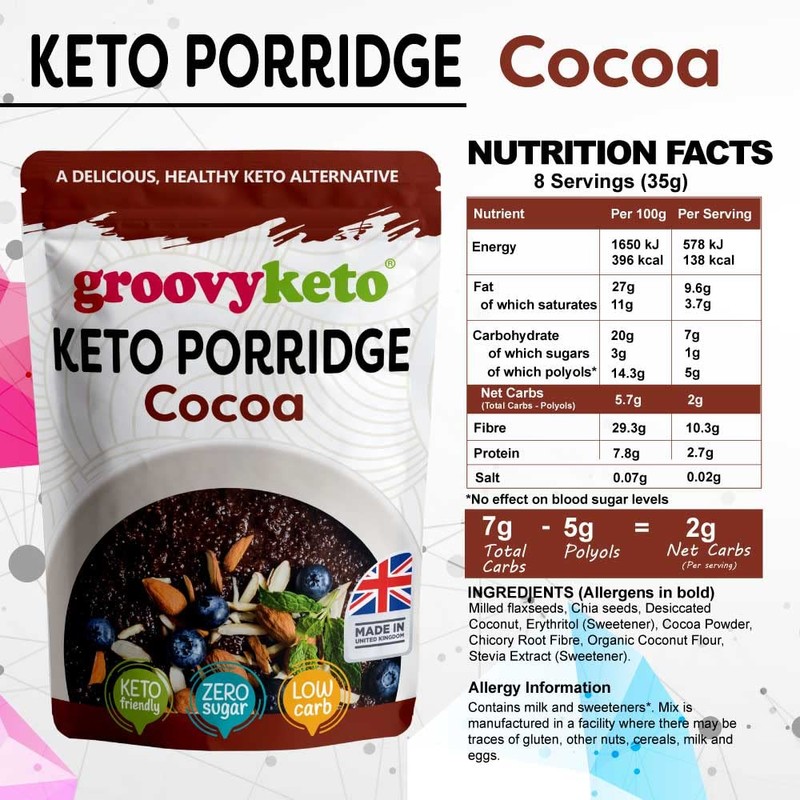 - 100% NATURAL KETO INGREDIENTS - There is nothing artificial in our Groovy Keto Cocoa Porridge. We only use ingredients that are keto friendly, super tasty and healthy for you, giving you the very best start to the day.