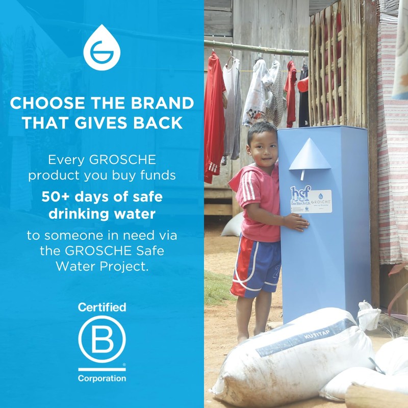 - GROSCHE is a proudly Canadian brand, founded in 2006. We are a women-owned, family-run business and a certified B Corporation. When you buy a GROSCHE product, you’re funding 50+ days of safe drinking water for someone in need. Thank you for choosing Canadian brands!