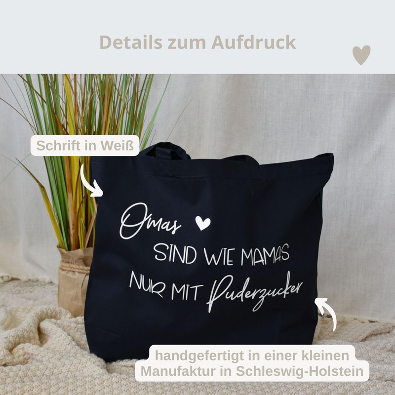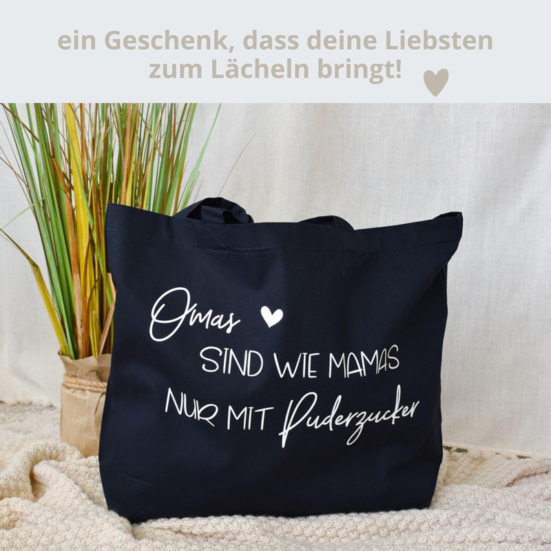 großer Baumwollbeutel - "Omas sind wie Mamas nur mit Puderzucker" | personalisiertes Geschenk der Enkel | Geschenkidee Lieblingsoma Shopper Tasche