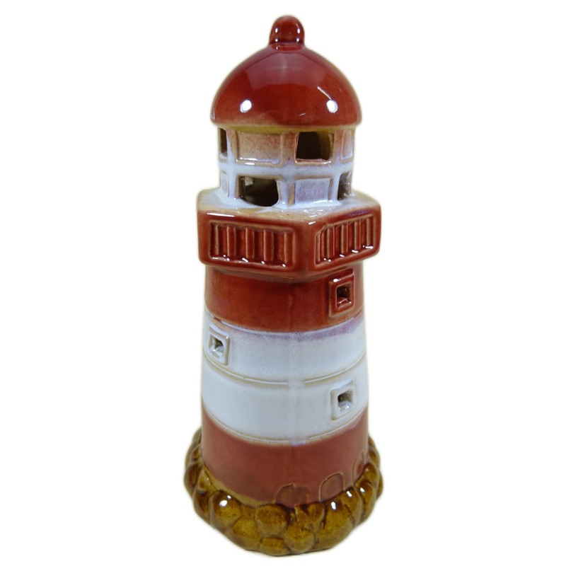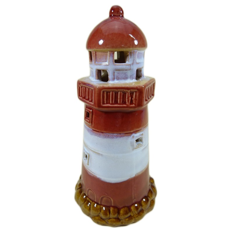 großer Leuchtturm Teelichthalter 17 x 8,5 cm Ø Hightower rot braun Maritim Figur Deko GPT 86369