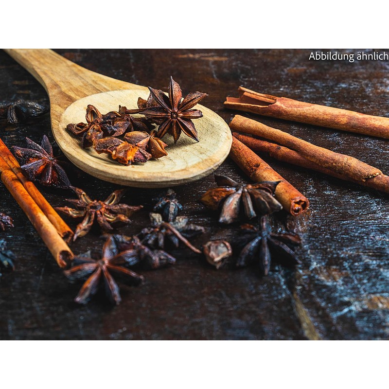 Star anise, undoubtedly the most beautiful spice, comes from southern China and Vietnam, where it has a long medicinal and culinary tradition. In Europe, star anise was founded in the 17th Century known. The aroma of star anise is similar to fennel and anise - both anise and star anise contain anethol-containing essential oil. Star anise has a licorice note and a distinct sharpness; it is strong and sweet in taste with a slightly numbing effect. The aftertaste is fresh and pleasant.