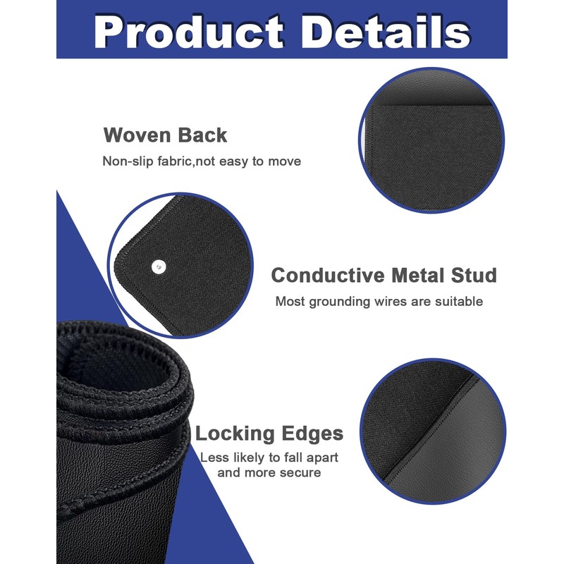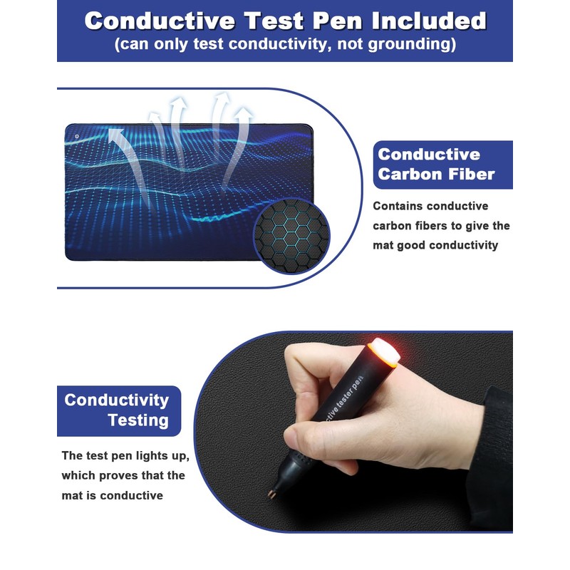 - Features : Strictly selected premium leather, carbon fiber has high conductivity and can effectively reduce static electricity. Universial grounding mat,earth connected mat, it's a good choice to choose it as grounding mat for desk
