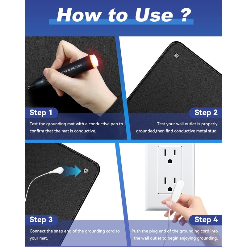 - Usage : Our grounding mats come with a 15-foot universal grounding wire.Just use the grounding wire to connect the grounding mat to the wall grounding hole and you can allow Earth energy into your body