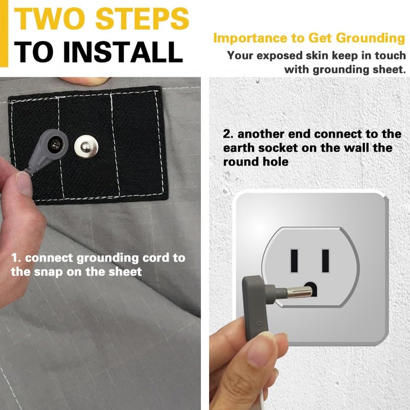 - đ°ăEVERYONE CAN USE IT EASILYăOur earthing sheet is very easy to use. Just make sure connection of one side of grounding cord to the grounding sheet and another side into the earth port of the wall outlet (third hole). Thatâs done!. What is the importance for grounding is to keep your bare skin touch the grounding sheet. Your arm, leg, foot or your back... these are all ok.