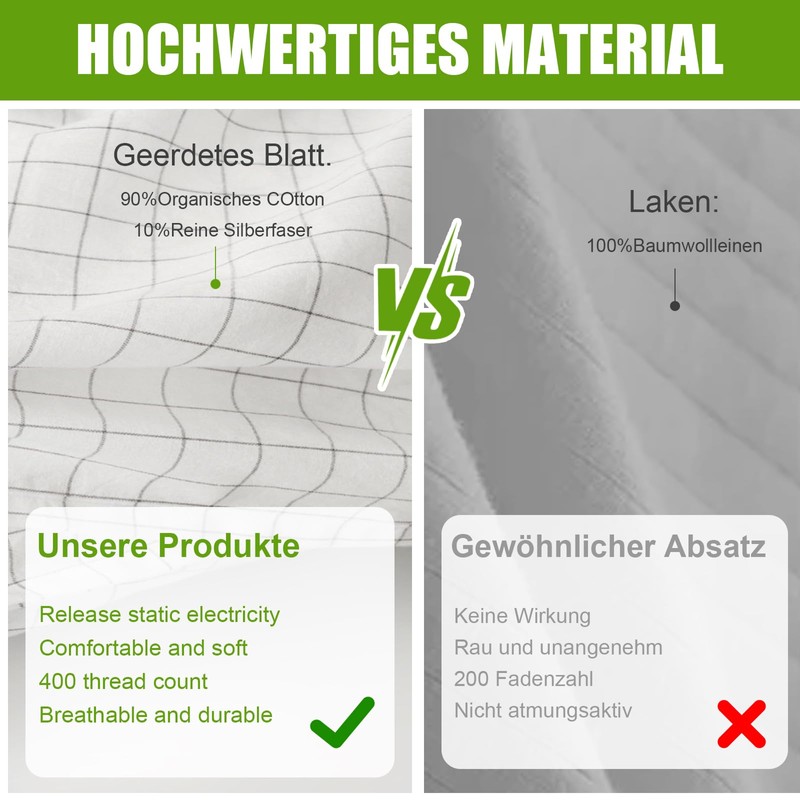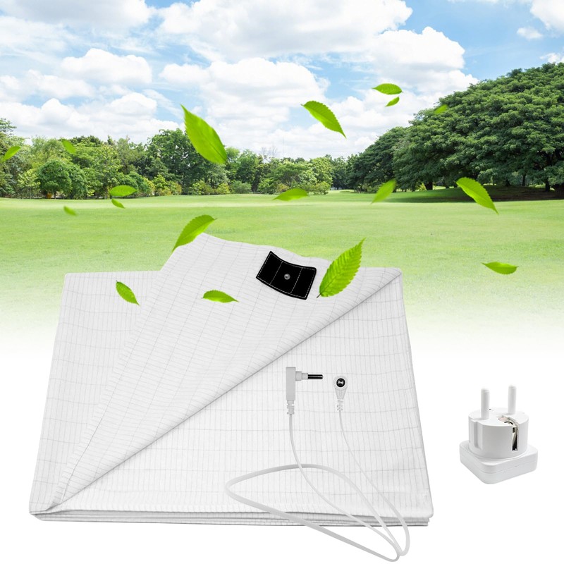 - Material and size: the size of this grounding bed sheet is 68 x 132 cm. Grounding mattress is made of conductive, high-quality materials, 95% of which are soft, renewable, washable organic cotton and 5% conductive silver fibre thread. Grounding mat for bed comes with a 4.6 metre long DE grounding cable. Simply connect one end of the grounding cable to the and the other end of the other with the earth cable of the socket.