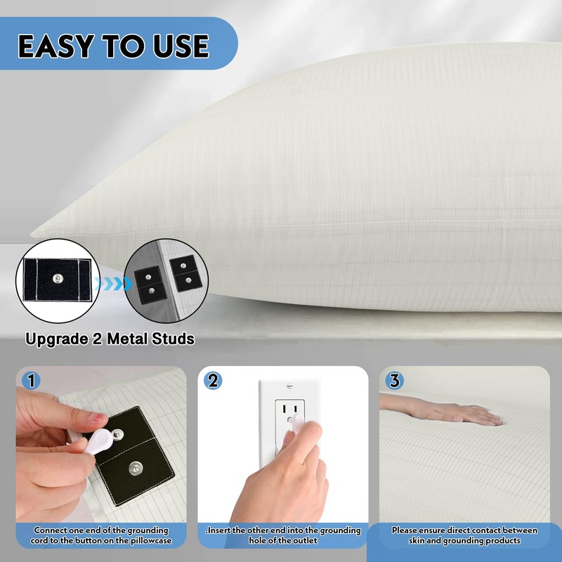 - 【Easy to Use】Attach one end of the grounding cord to the grounding pillowcase and the other end to the grounding hole of the wall socket. When sleeping, keep your skin in contact with the grounding pillowcases.
