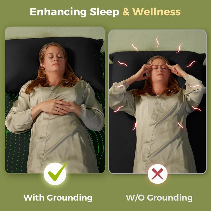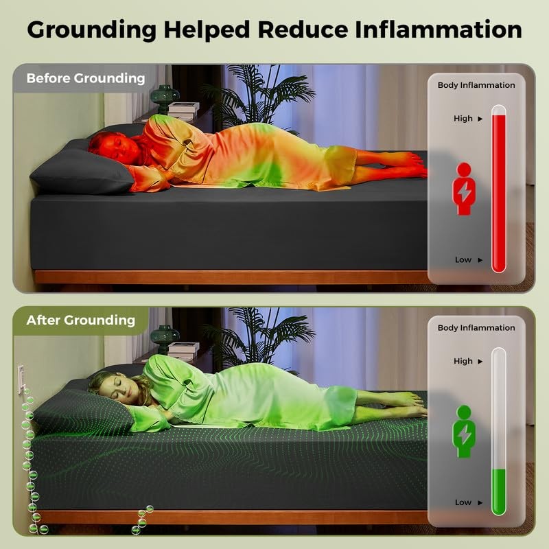 - 90% Viscose Derived from Bamboo: Grounding sheets are made from 90% viscose derived from bamboo and 10% silver fibers. It is stronger than cotton grounded sheets and has a silky smooth texture. Ideal for hot sleepers, it features moisture-wicking, breathable, and temperature-regulating properties. Grounding fitted sheets provides maximum grounding effects and comfort, help you sleep better, allow you to draw energy from the Earth, reduce stress, recover faster.
