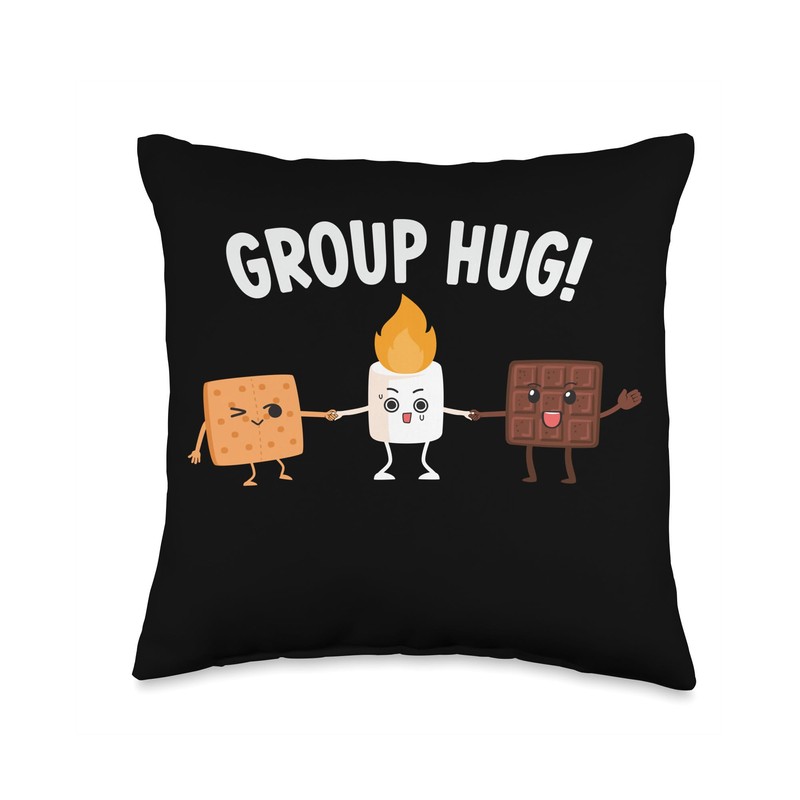 Group Hug Camping Campfire Chocolate Marshmallow S'Mores Throw Pillow