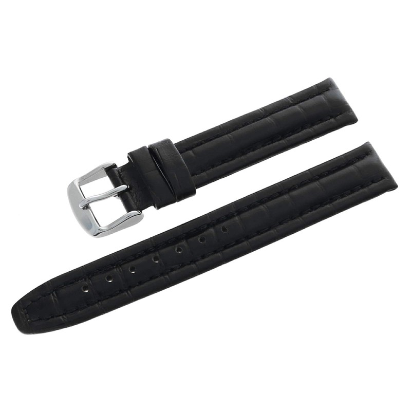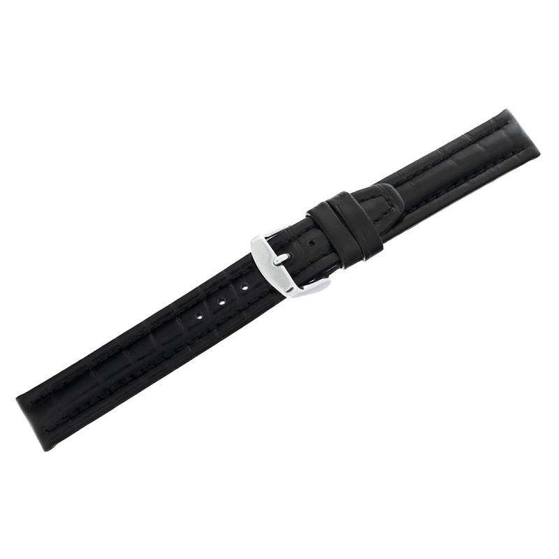 - GROVANA 16 mm wide watch strap in black with silver pin buckle