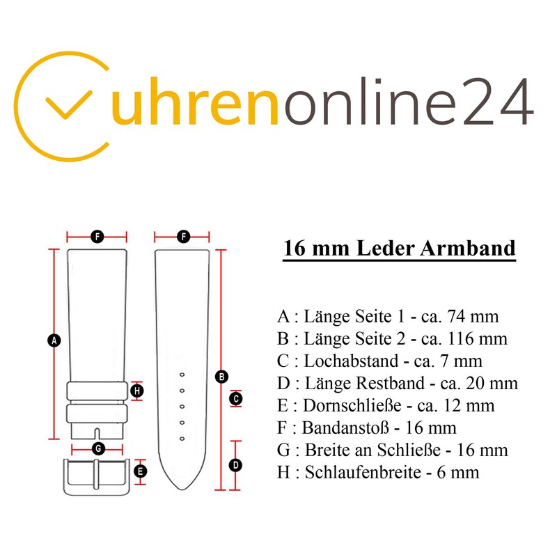 - The watch strap also fits other watches with the standard strap lug of 16 mm.