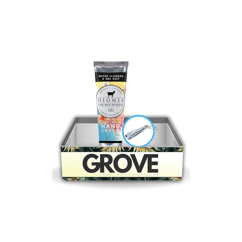 GROVE Goat Milk Water Flowers and Sea Salt Scent Hand Cream 1 oz Bundle with Nail Clipper - Nourishing Goat Milk Hand Cream for Hydrated Skin - Revitalizing Goat Milk Cream for Soft Skin - (2 Items)