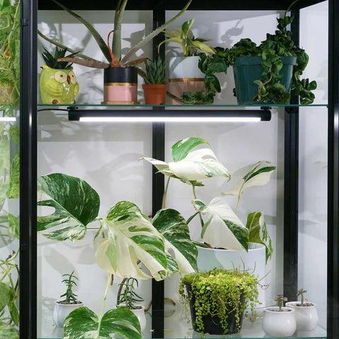The Grove LED Bar Light, perfect for under-cabinet or wall mounting, beautifully elevates plant growth and room aesthetics, making it ideal for a variety of indoor houseplants and herbs.