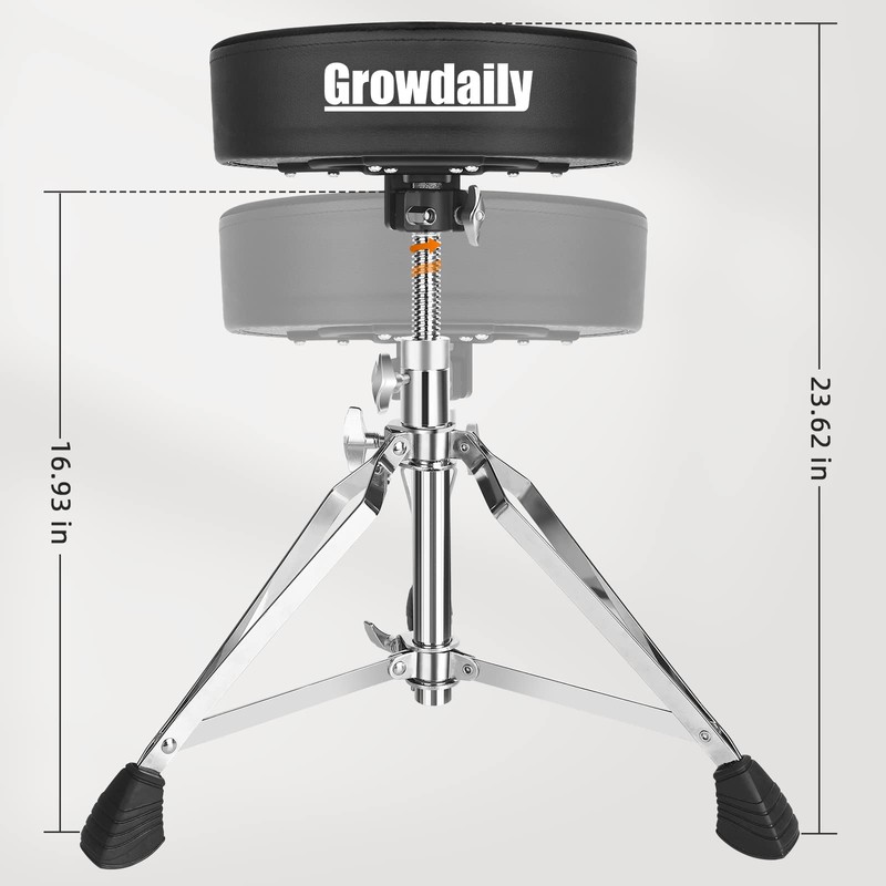 - Drum stool adjustable height The drum throne seat can be adjusted between 16.93 inches - 23.62 inches with 4-position bolt locks or bottom knobs to ensure a comfortable height for playing your instrument