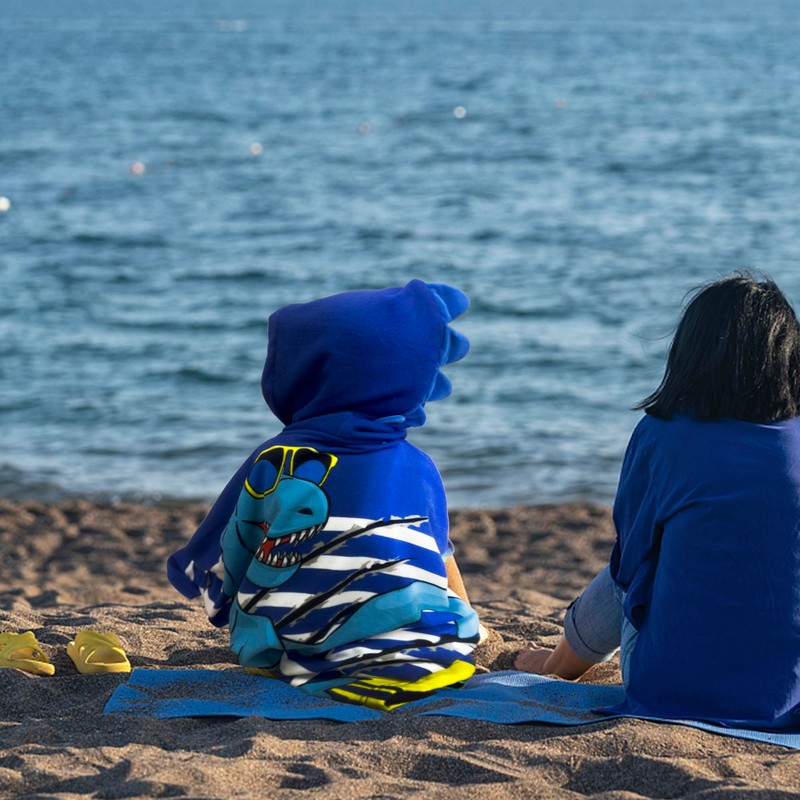 - 【Free Kids' Hands 】This kids hooded beach towel is oversized design. Kids will love how easy this hooded beach towel is to put on and easily use their hands while being covered compared to other hooded towels. There're 2 snaps on each side. It works like a poncho for after the pool/bath/beach rather than a regular beach towel. Takes the hassle out of drying kids off with a towel dragging on the ground!