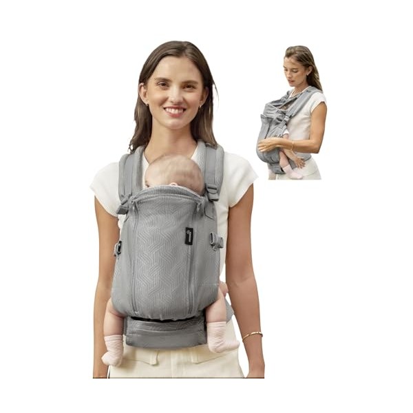 GROWNSY Baby Carrier Newborn to Toddler 7-44lbs, All Season Design with Adjustable Mesh Panel, Ergonomic Baby Carriers with Lower & Upper Buckle, Hands-Free Parenting, Gray