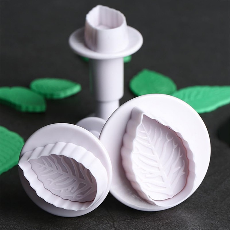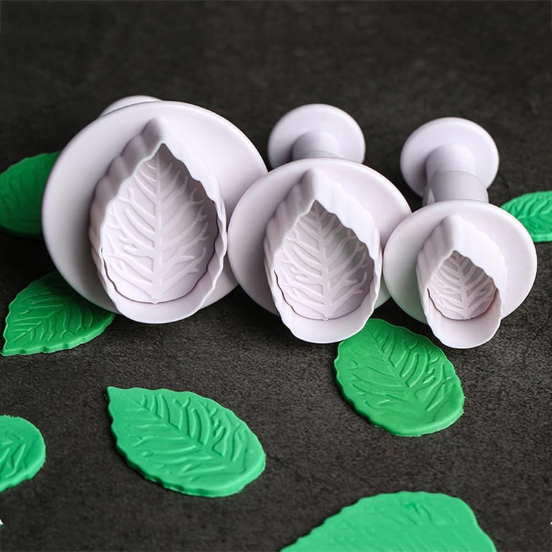 Growtail 3 Pieces Rose Leaf Fondant Plunger Cutters Veined Rose Leaf Cookie Cutter Decorating Mold Tools
