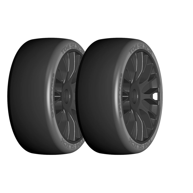 GRP GTX04-XM2 1:8 GT New Slick Supersoft Black 20 Spoke Rubber Tires (2)