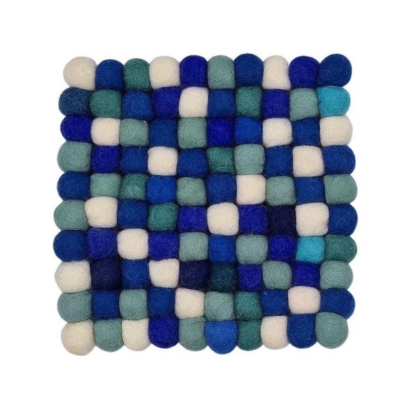 Grült Home Trivet - Felt Trivet for Cups, Pots, Pans and Cups, Hand-Felted in Nepal (Blue, Square 20 cm)