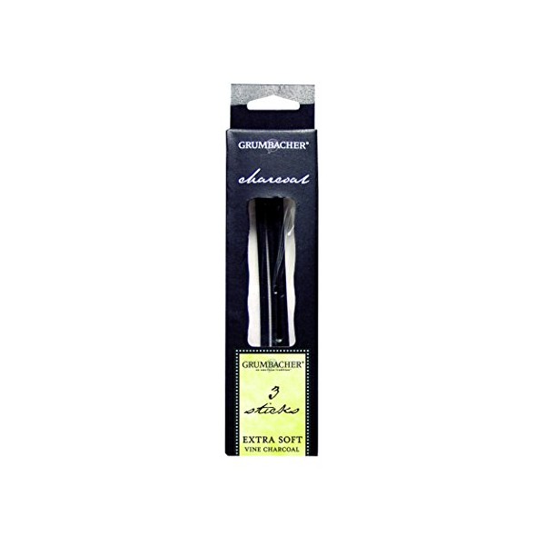 Grumbacher Extra Soft Vine Charcoal is created by burning hand-selected vines at high temperatures to produce a rich, dark stick. These charcoal sticks measure approximately .25 inches (.635 cm) in diameter. Because it is a natural product, sizes may vary slightly. Pack of 3 sticks. Made in USA. Since 1905, Grumbacher has been a brand trusted by students, professors, art conservationists, and professional artists throughout the United States.