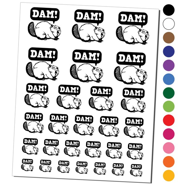 Grumpy Beaver Yelling Dam Temporary Tattoo Water Resistant Fake Body Art Set Collection - Black (One Sheet)