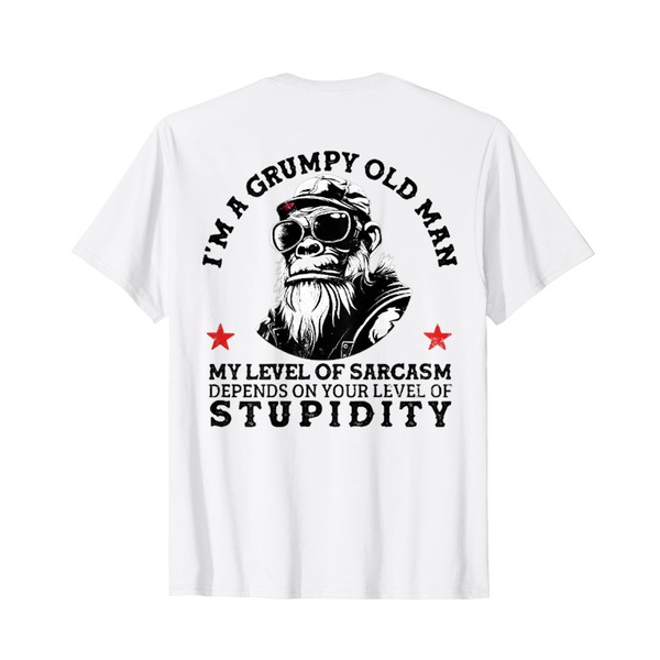 Grumpy Old Man - My Level Of Sarcasm Funny Monkey (On Back) T-Shirt