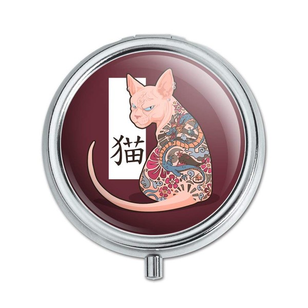 Grumpy Sphynx Cat Neko with Dragon Tattoo Pill Case Trinket Gift Box