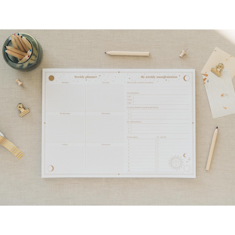 Grupo Erik Weekly Planner Pad A4 Calendar Planner Astral Desk Calendar Pad - Calendar Planner - Table Planner A4 - Desk Calendar without Date - Desk Pad Paper