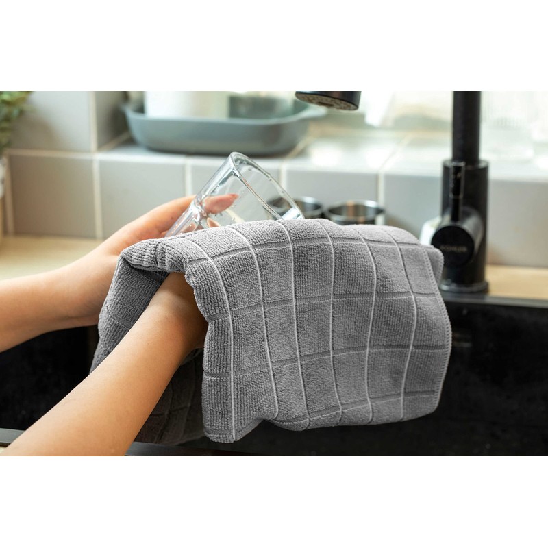 gryeer 8 Pack Microfibre Tea Towels, Super Absorbent, Soft and Lint Free Kitchen Towels, 45 x 65 cm, Grey