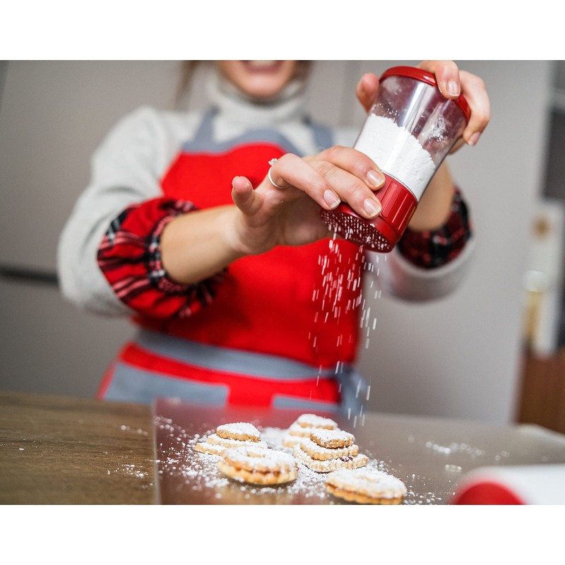 - Leicht zu handhaben: Der Zuckerstreuer ist einfach zu bedienen und sorgt für eine gleichmäßige Verteilung des Zuckers auf Gebäck, Desserts und mehr.