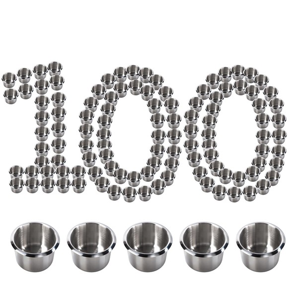 GSE Stainless Steel Drop-in Anti-Spill Storage Drink Cup Holder, Poker Table Cup Holders for Casino Poker Table, Work Desk and Boats, RV Cars & Trucks (Small - 100 Pack)