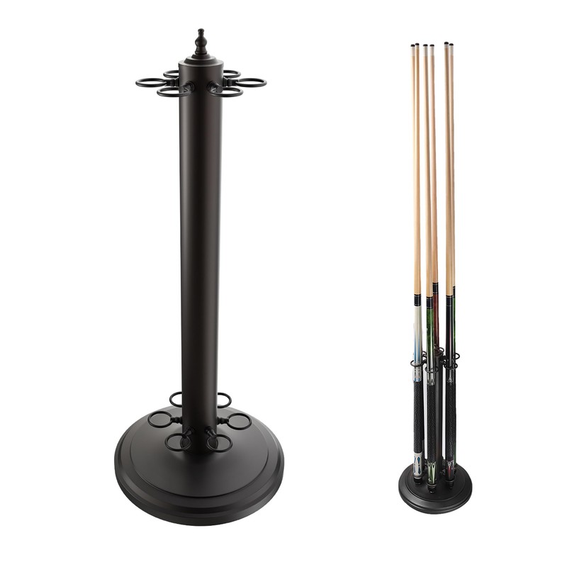 GSE Games & Sports Expert Stand-Style Metal Billiard Pool Cue Rack Only, Holds 6 Pool Sticks, Floor Stand Billiard Cue Rack (Matte Black)