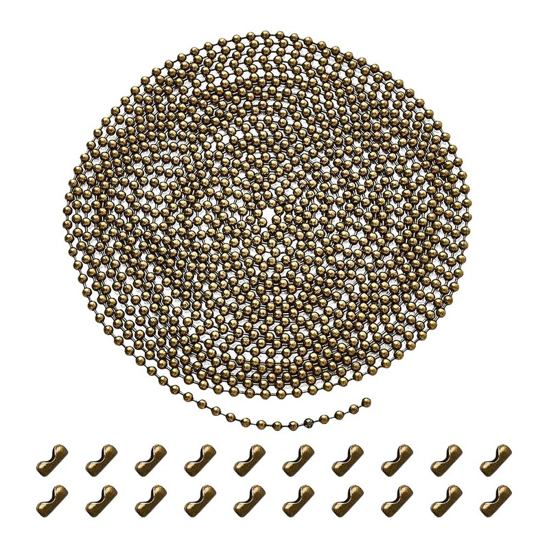 GSHLLO 2.4mm x 5m Ceiling Fan Chain Extender Beaded Ball Pull Chain Extension Light Pull String Replacement Craft Ball Bead Chains with 20 Pcs Connectors for Light Fixtures Bronze