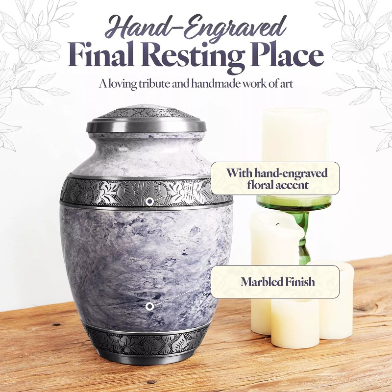 - QUALITY CRAFT - Our decorative urn is made of durable aluminum. The floral pattern has been hand engraved, a reverent testament to your family